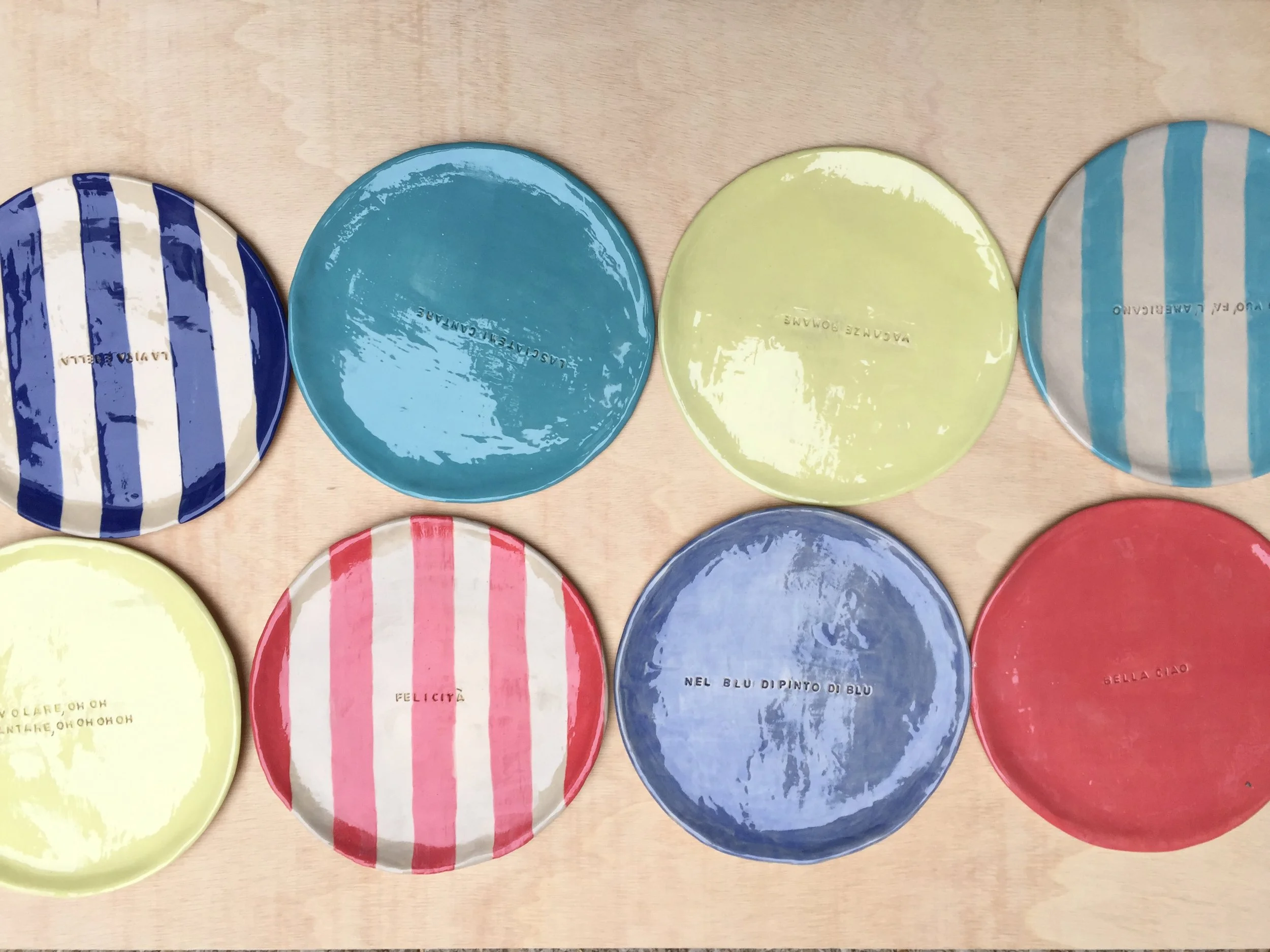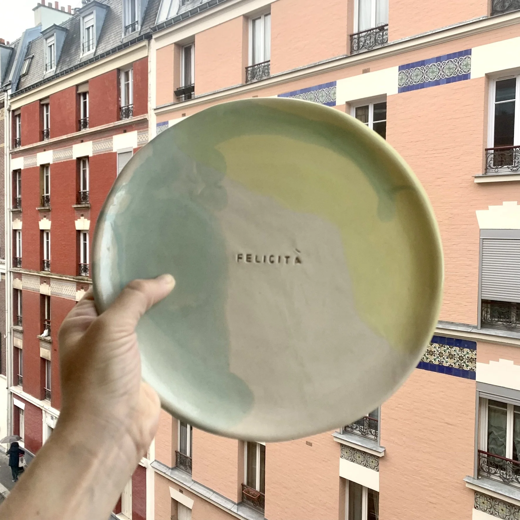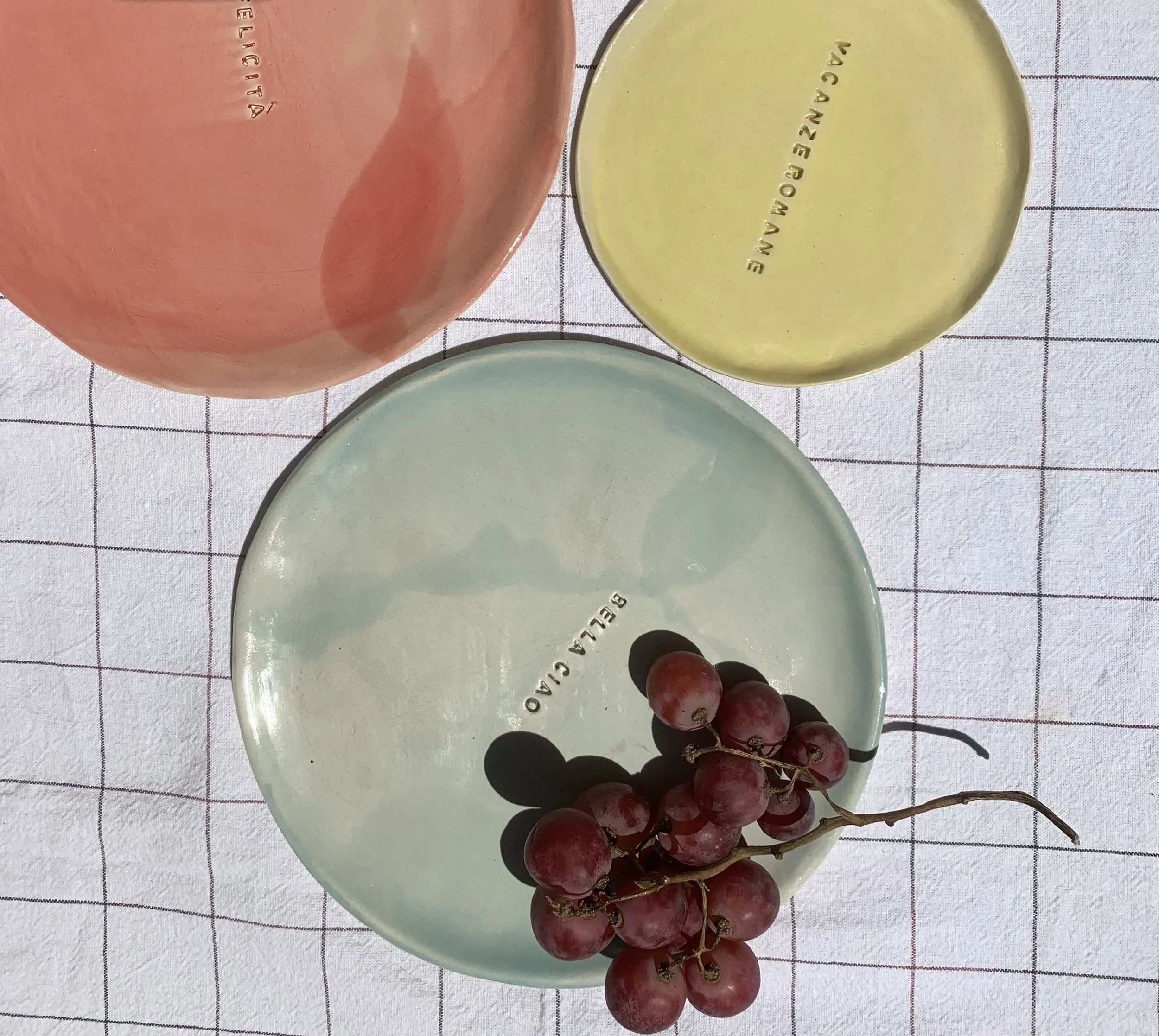 Vous souhaitez marquer le coup, offrir un cadeau vraiment original ? Toutes les assiettes, ainsi que la collection enfants Brousse ceramics sont personnalisables. Les inscriptions sont estampées à la main, avant d’être fixées dans l’émail grâce à un deuxième passage au four.